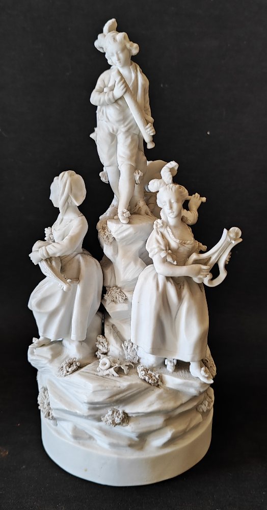 Mid 19th C. parian porcelain figure group: Musicians, 28cm high