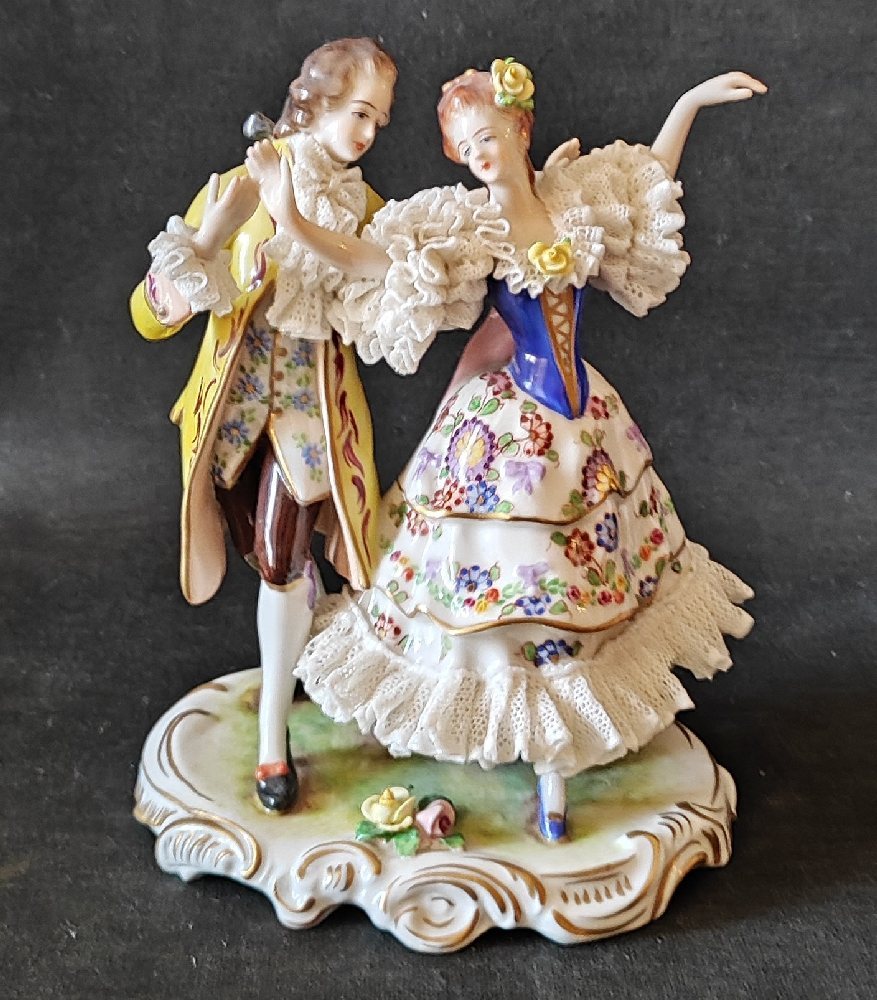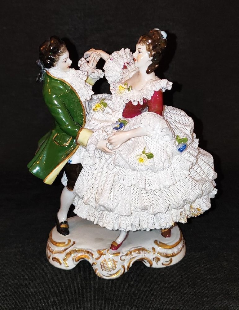 VOLKSTEDT porcelain figure group of a couple dancing, with lace work, 17cm