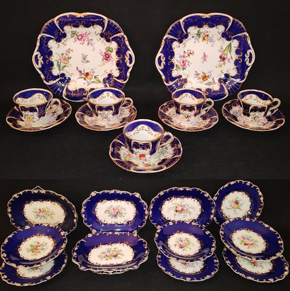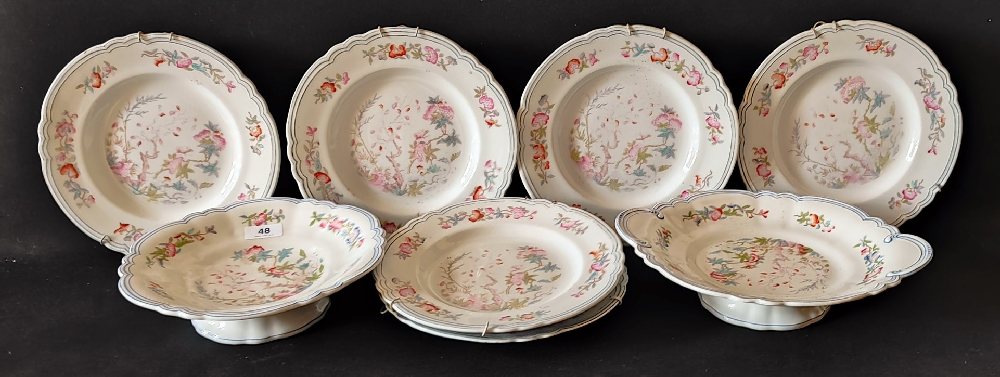 19th C. Ironstone china comport, dish and 6 plates, hand painted