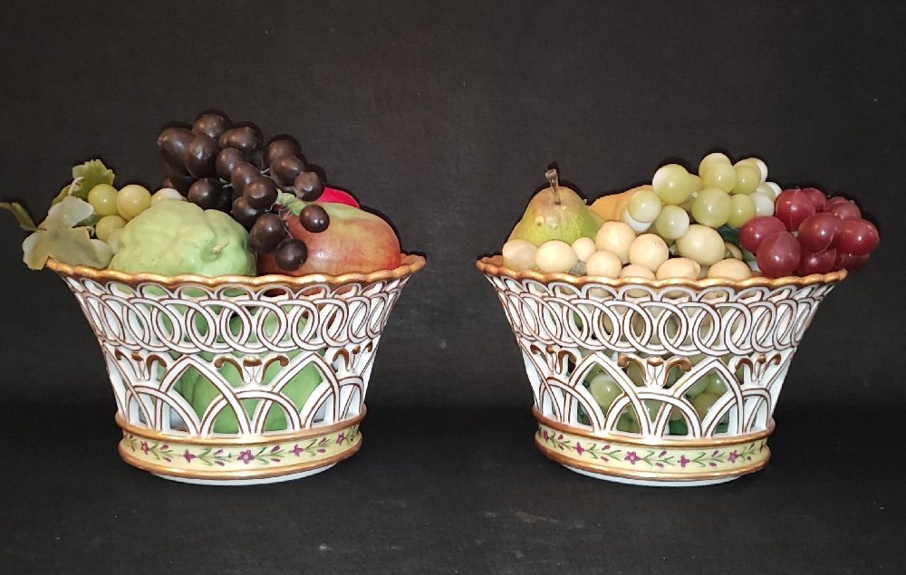 Early 20th C. Dresden porcelain pair fruit bowls with openwork and painted gilt, 24cm