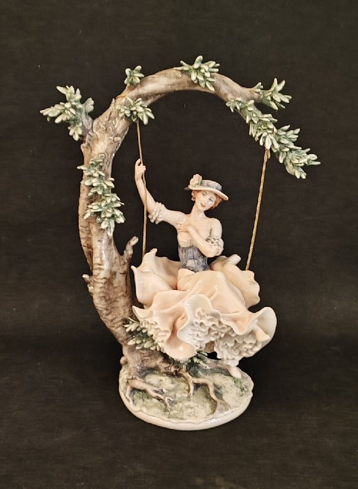 GIUSEPPE ARMANI polychrome decorated resin figure of a girl on a swing, 32cm