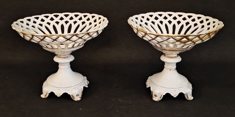 19th C. China pair comports with open work decoration, 20cm