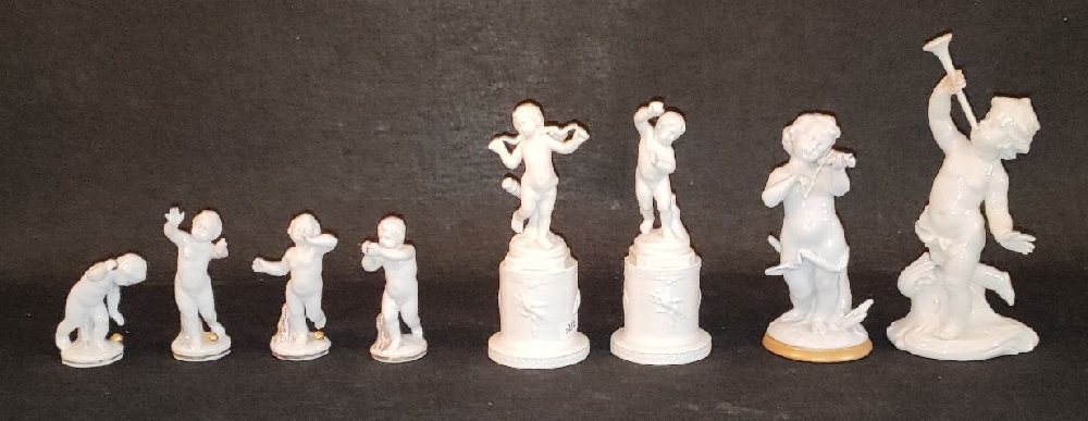 4, Capo Di Monte blanc de chine porcelain angels, 9cm; and 4 porcelain cherubs