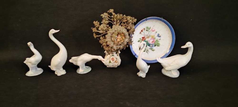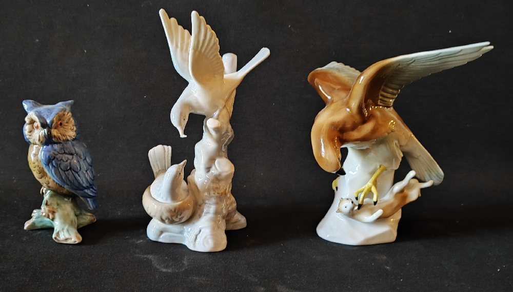 GRAFENTHAL porcelain hawk and owl; MIQUEL REQUENA porcelain doves