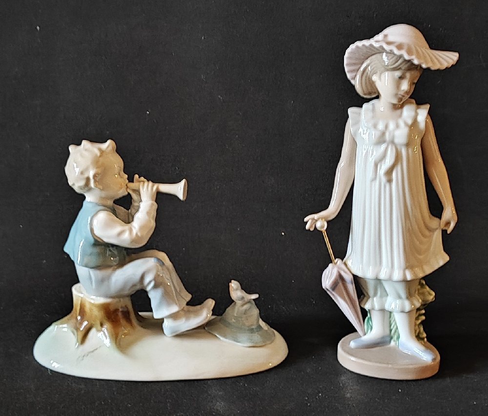 NAO porcelain figure of a girl; and METZLER porcelain figure of a boy trumpeter