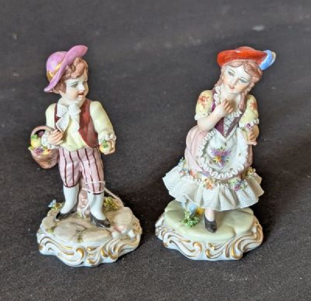 VOLKSTEDTER porcelain figure group with yellow jacket and lace, 17cm