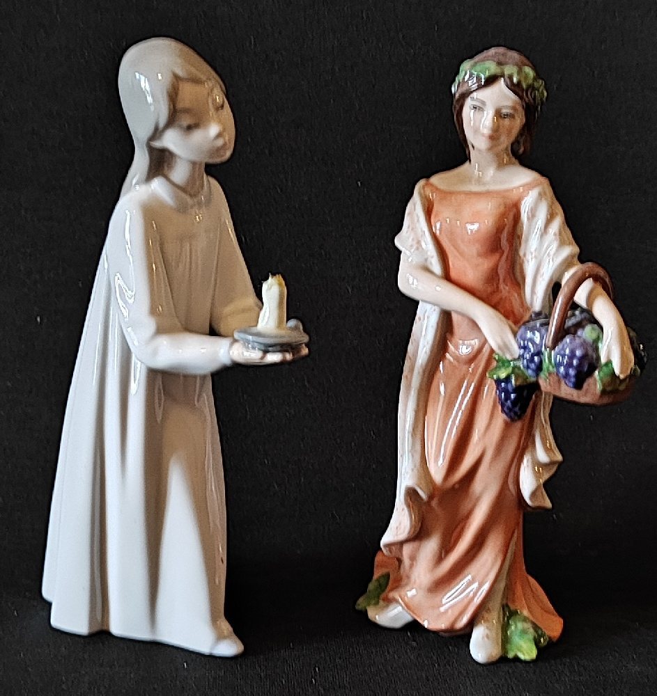 ROYAL COPENHAGEN porcelain figure of a girl, 20cm; and LLADRO porcelain figure of a girl with candle, 21cm