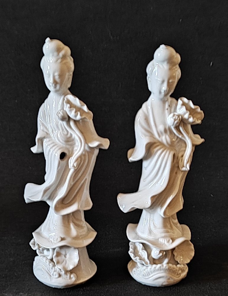 2, Chinese creamware porcelain standing figures of Guan Yin, 18cm