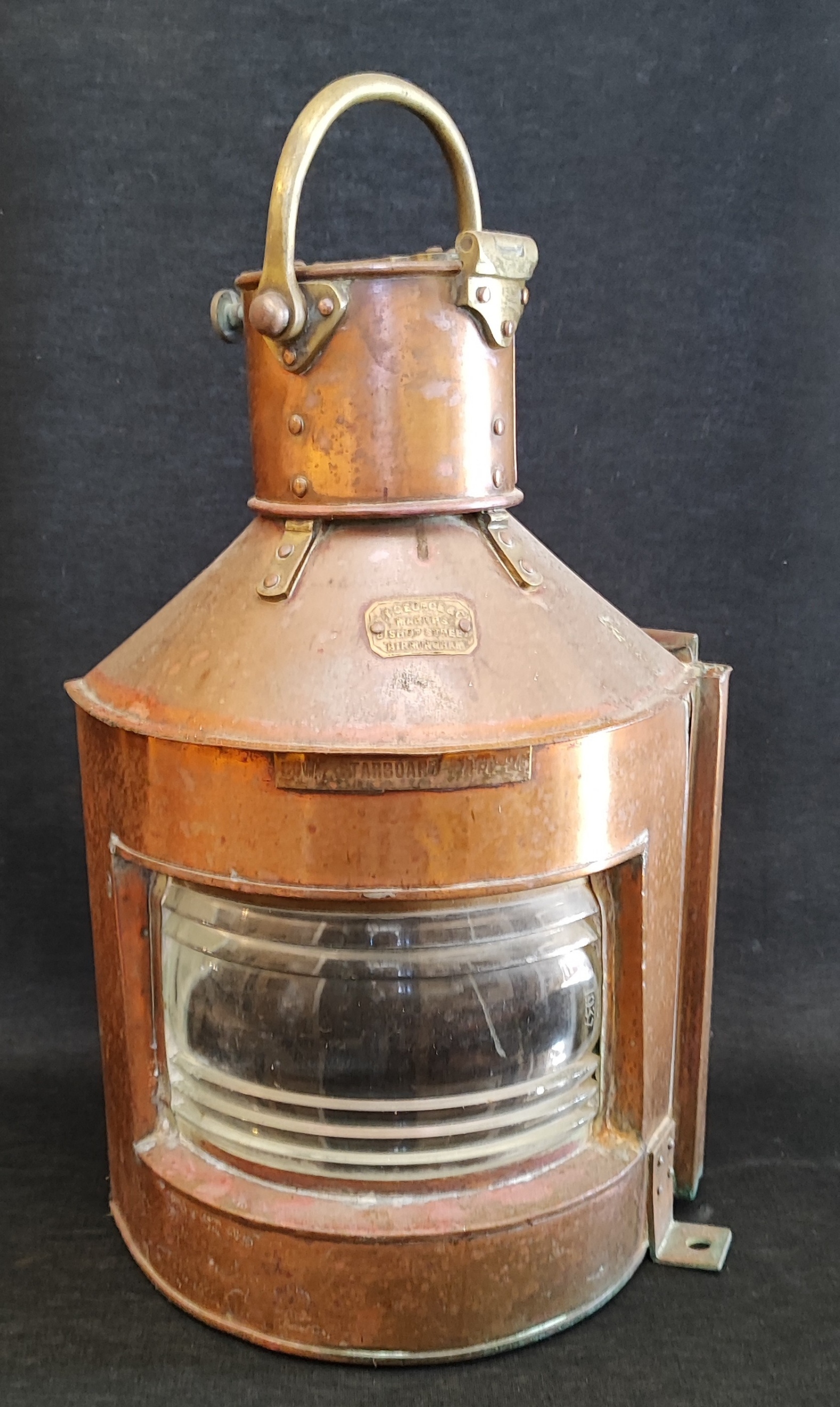 Late 19th C. copper port and starboard lanterns with original glass (Canada)