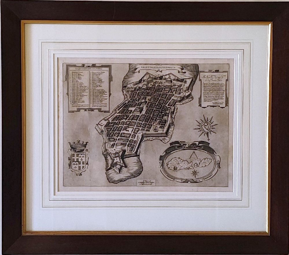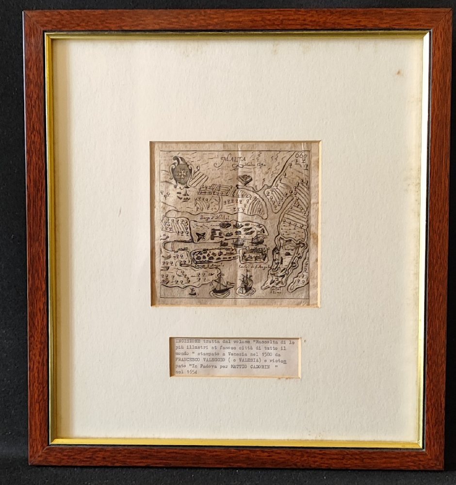 FRANCESCO VALEGGIO (VALESIO) print ‘Malta ‘ 1654, from ‘Raccolta di le piu illustri et famose citta di tutto il mondo (Padua, Matteo Cadorin ), framed