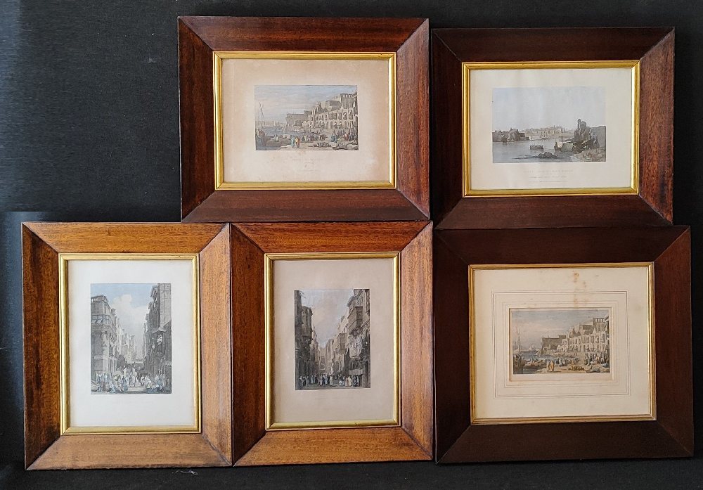 5, Late 19th C. Steel plate prints ‘Malta’ in mahogany frames