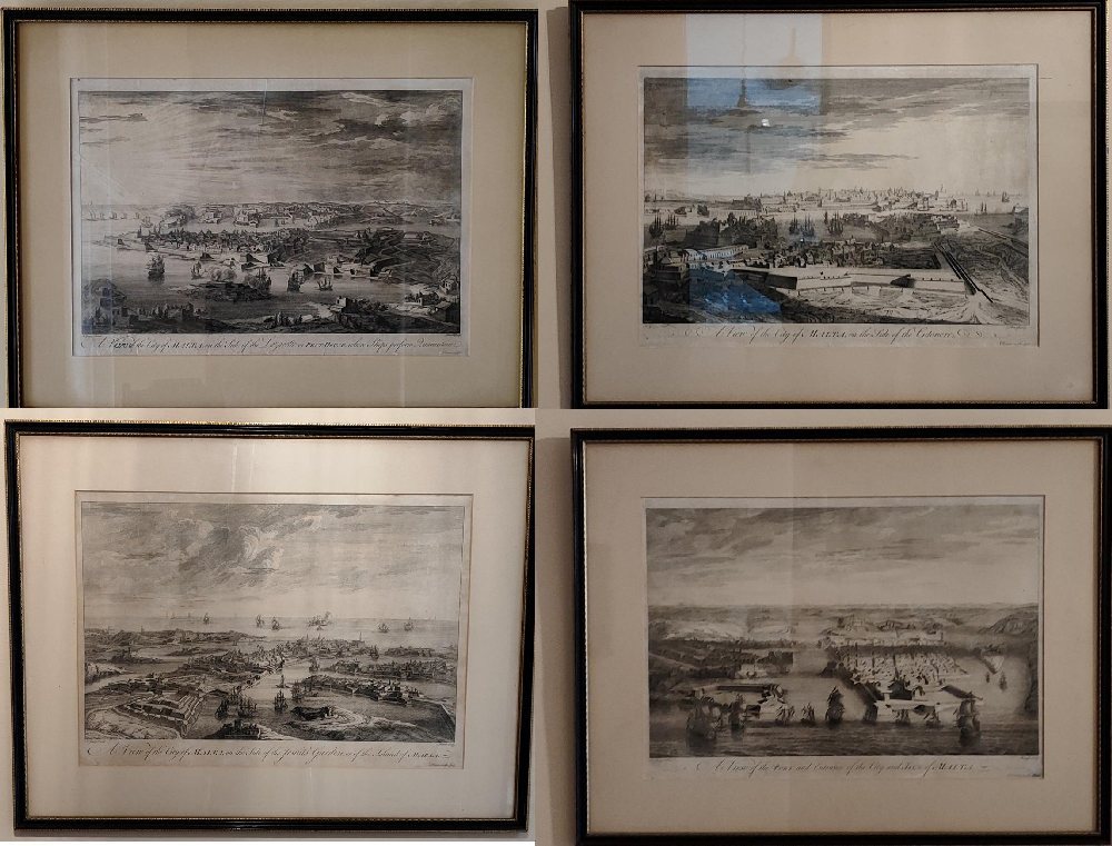 JOSPH GOUPY (1689-1769) set of 4 original prints ‘Malta Views’ framed