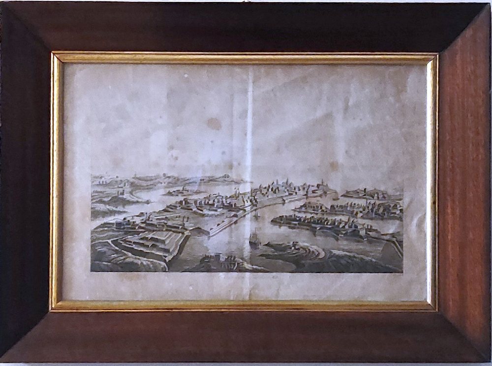 Early 19th C. Print ‘Birds Eye View of the City and Port of Malta’ 1804 (Boisgelin), framed