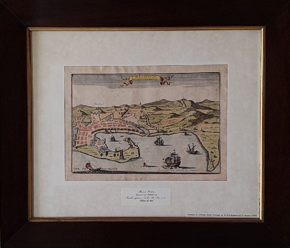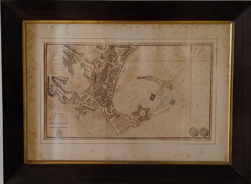 WS SMITH print ‘Plan of the City and Harbour of Messina’ 19th C. framed
