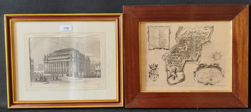 FILIPPO SUCHIELLI reprinted plan of Valletta, framed; Late 19th C. Broadsheet print ‘The New Opera House’, framed