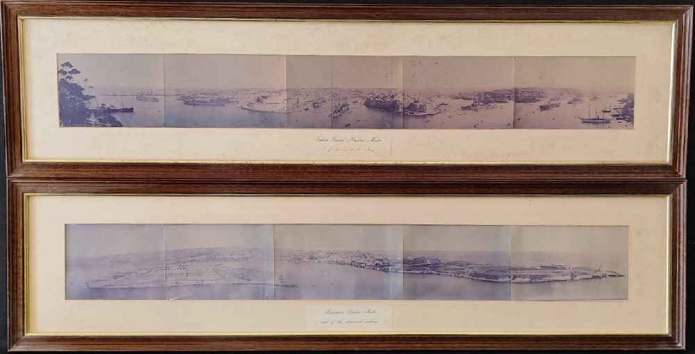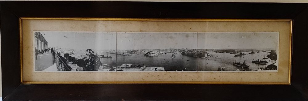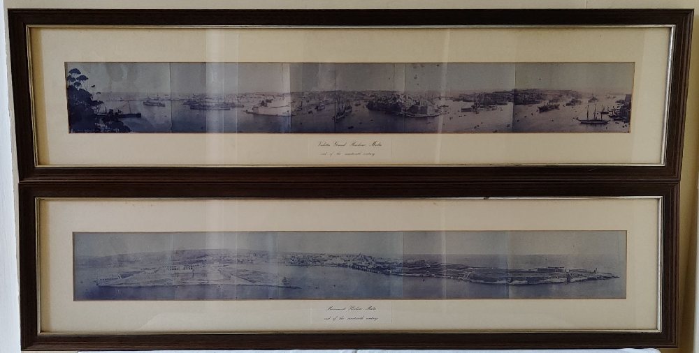 2, B&W photographic print of Grand and Marsamxetto Harbours, 5 fold panoramas, 87cm, 1st half 20th century, framed