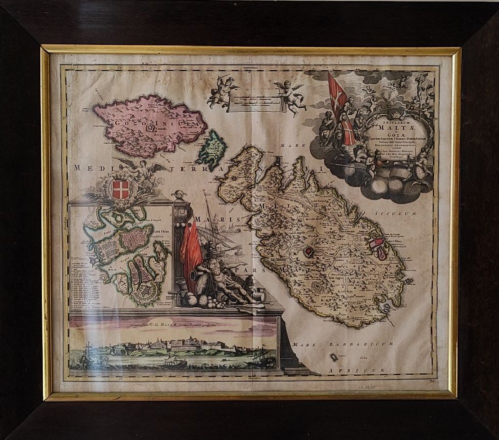 NICHOLAES VISSCHER (1649-1702), map ‘Insularum Melitae vulgo Maltae et Gozae’ ca 1680, framed