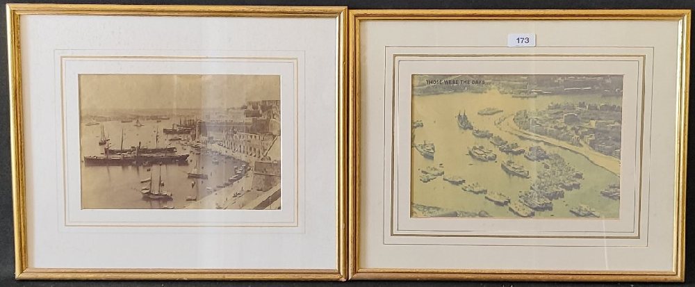 19th C. sepia ohotograph ‘Grand Harbour’ 27 x 18cm, framed; and another of TaXbiex, framed
