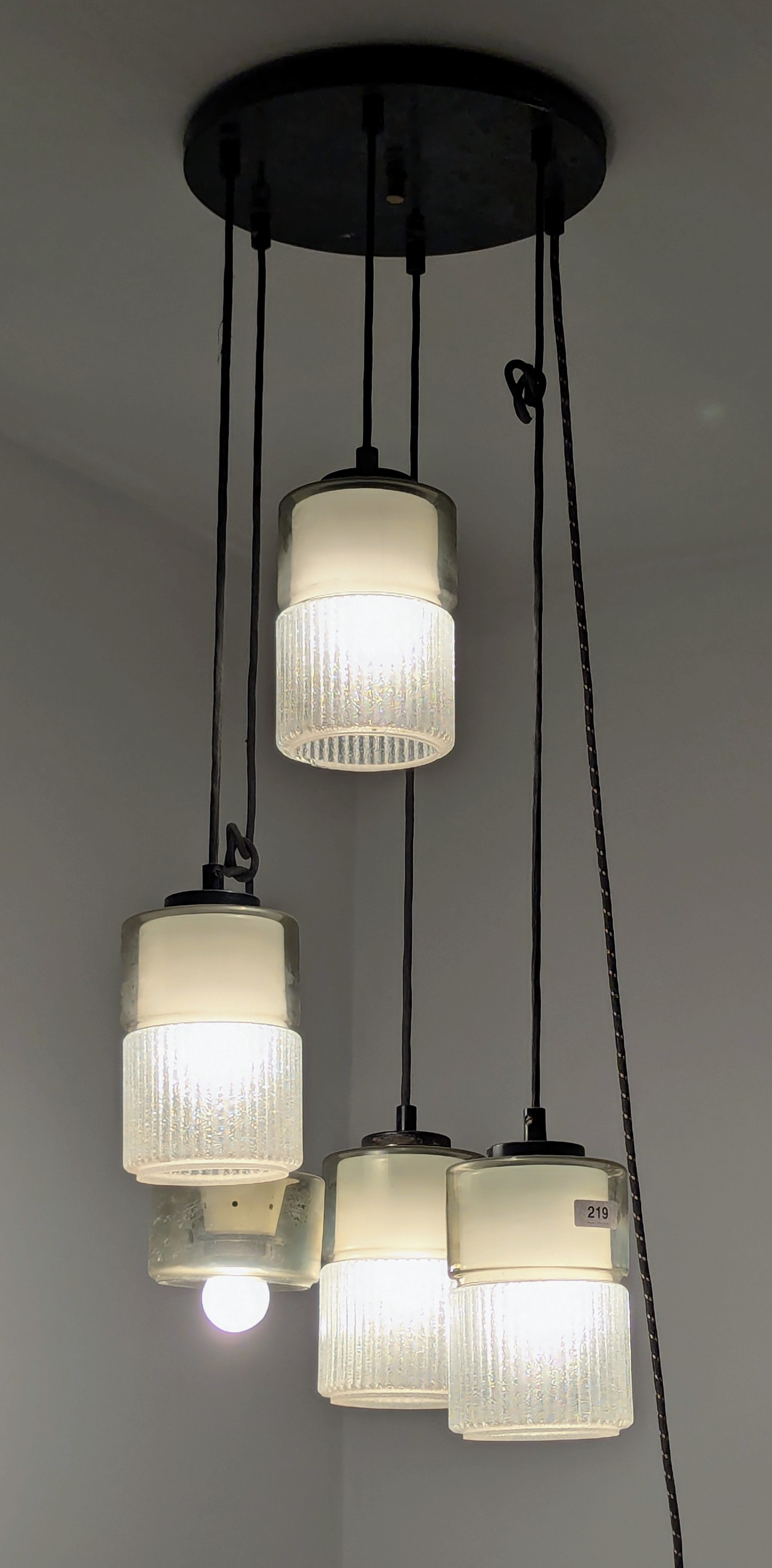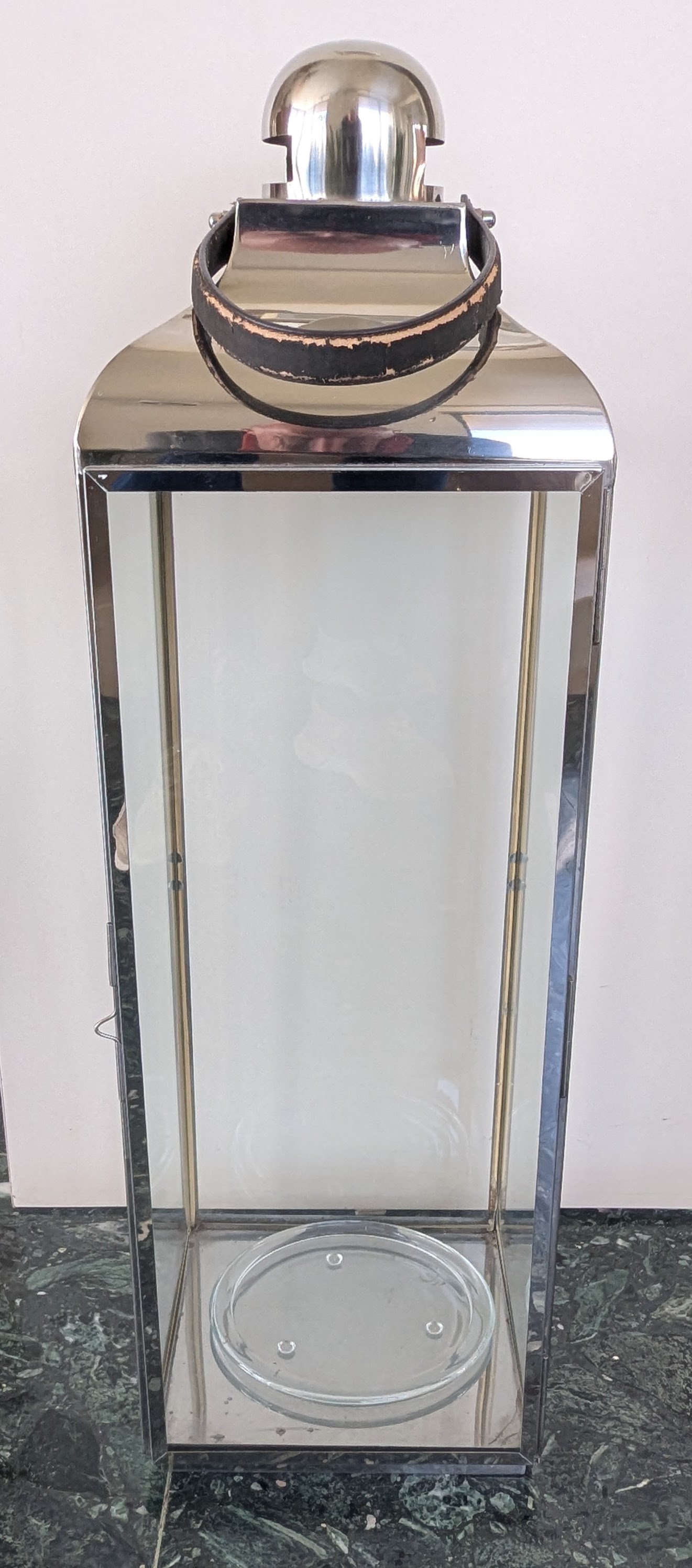 Early 20th C. Silver plated sanctuary lamp on chains, 95cm