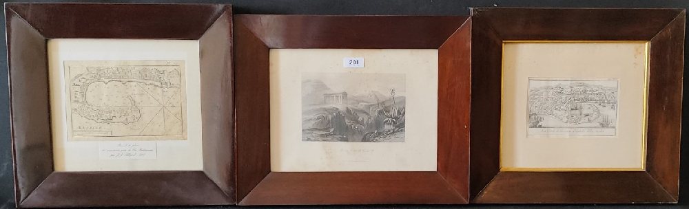 JJ ALLEGARD print ‘Plan of Messina’, 1795, framed; Early 19th C. Print ‘Messina, Capitale di Sicilia’ framed; 19th C. Print ‘Grecian Temple at Segesta’ framed