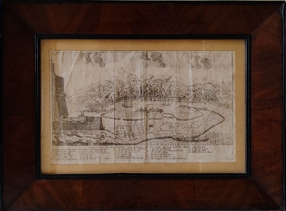 19th C. Print ‘View of the Harbour at Messina’ framed