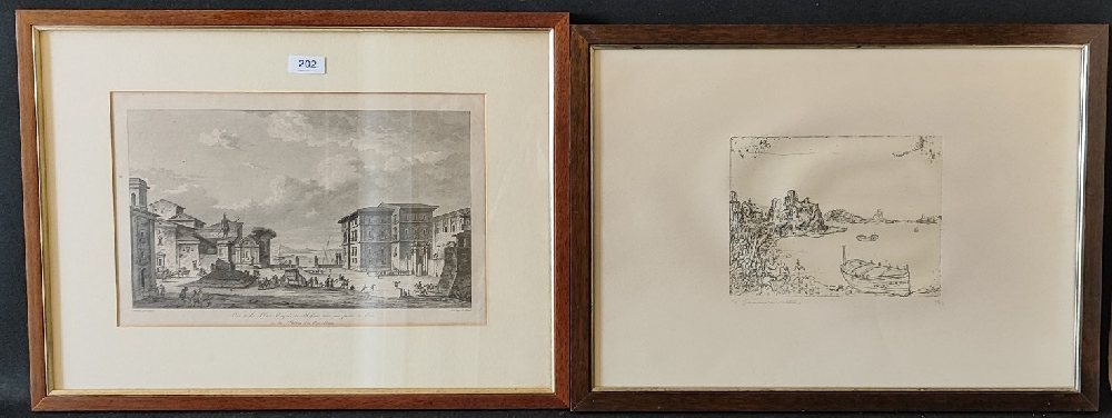 DESPREZ & DeGHENDT, print ‘Vue de la Place Royal de Messine’, framed; NUNZIO SCIAVARRELLO, 1918-2013) etching, ‘Il Castello di Aci’, L/e 63/99, 49 x 35cm, framed