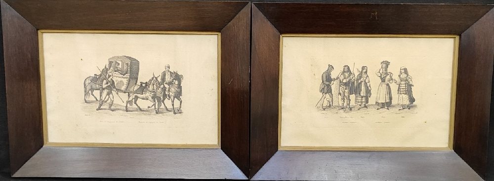 2, Early 20th C. Prints ‘Sicilian Customs’ in mahogany frames