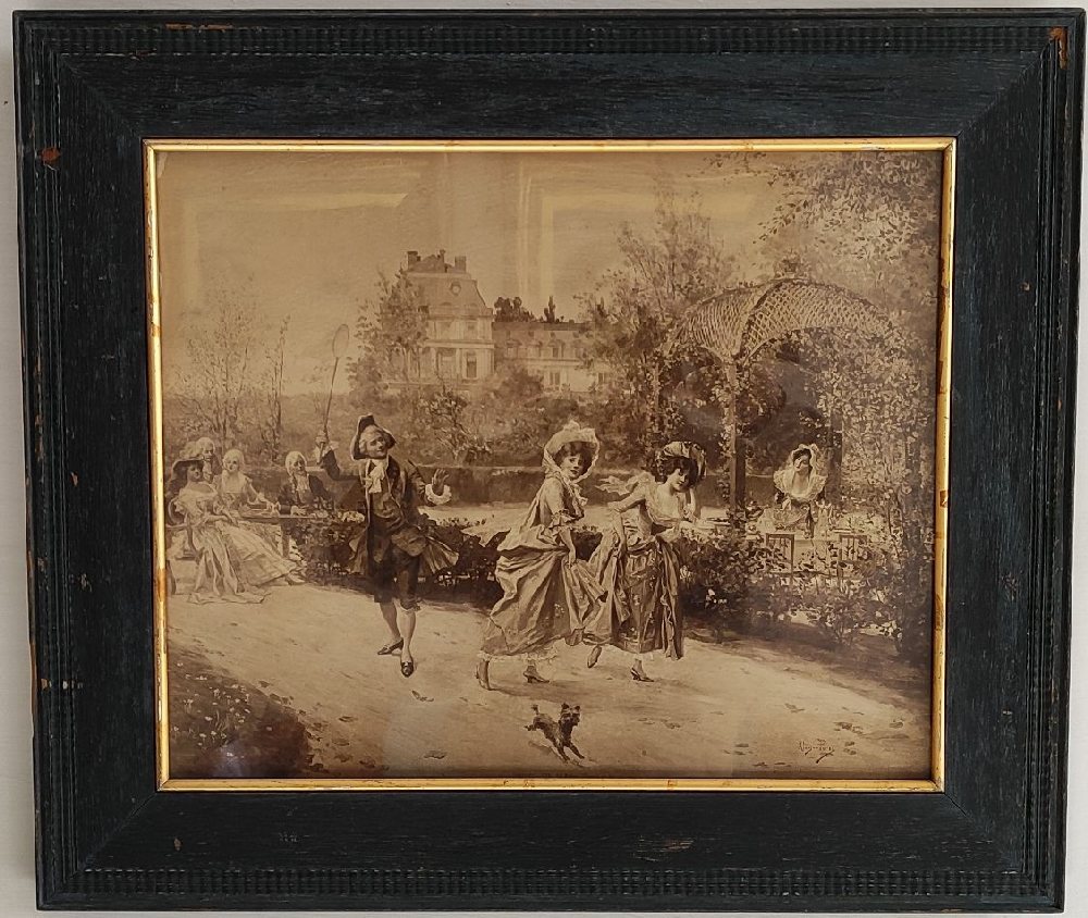 MARIANO ALONSO PEREZ sepia print ‘La Chasse aux Papillons’ framed