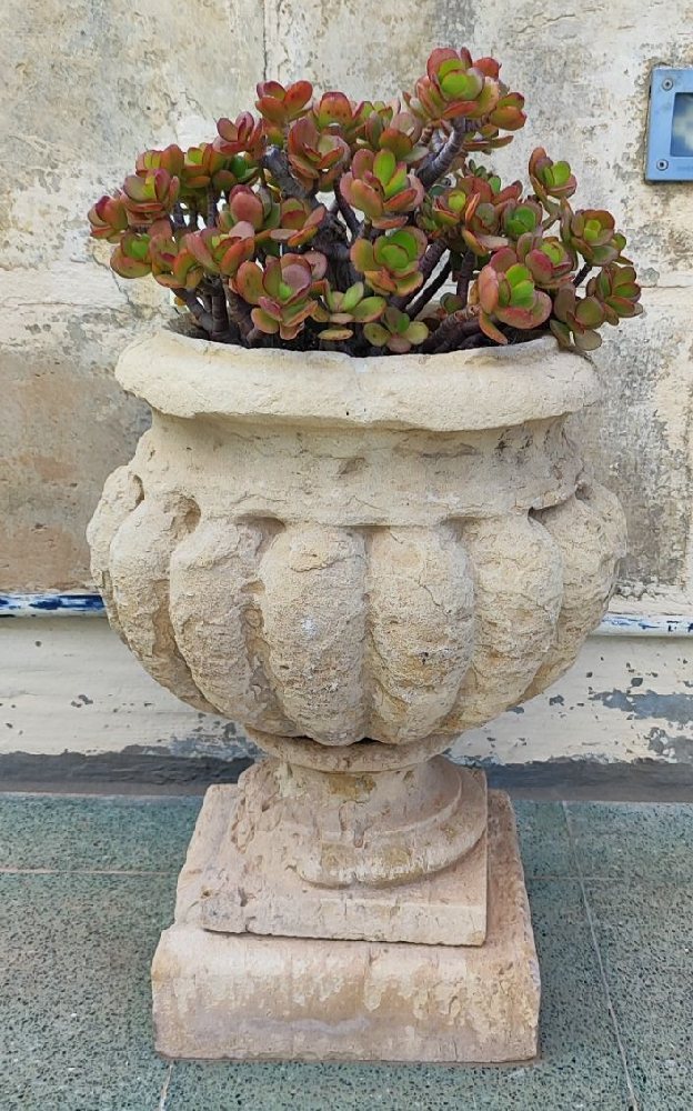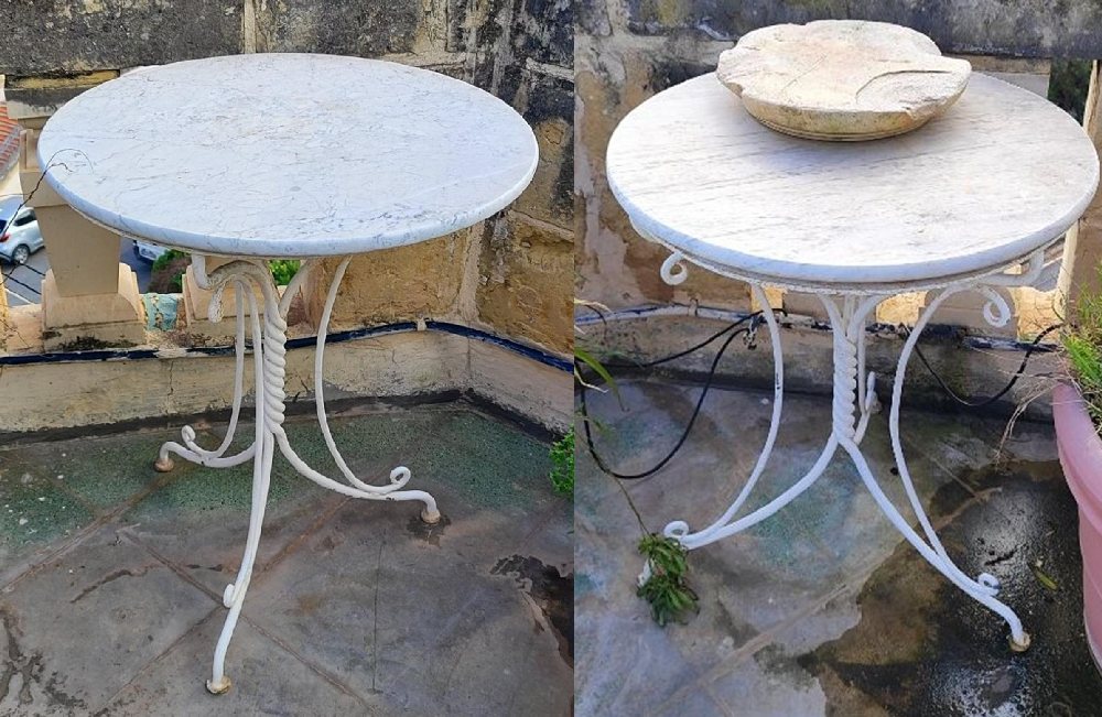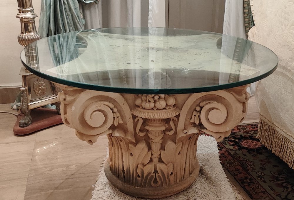 Maltese carved limestone Corinthian column capital, 53 x 63cm with a thick plate glass round top, 90cm