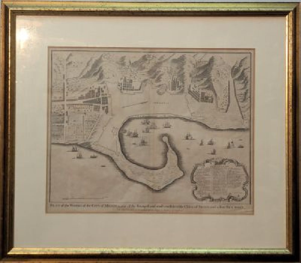 Mid 19th C. plan of the Works of the City of Messina and Seaport, (from Rapin’s History of England) framed