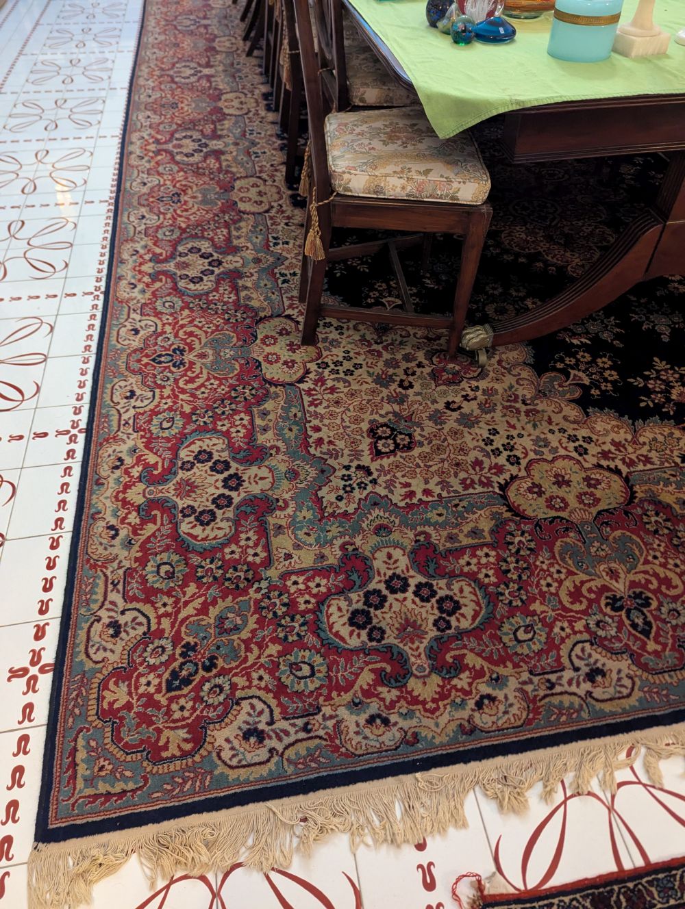 Persian Tabriz machine made carpet, dining room, 600 x 300cm