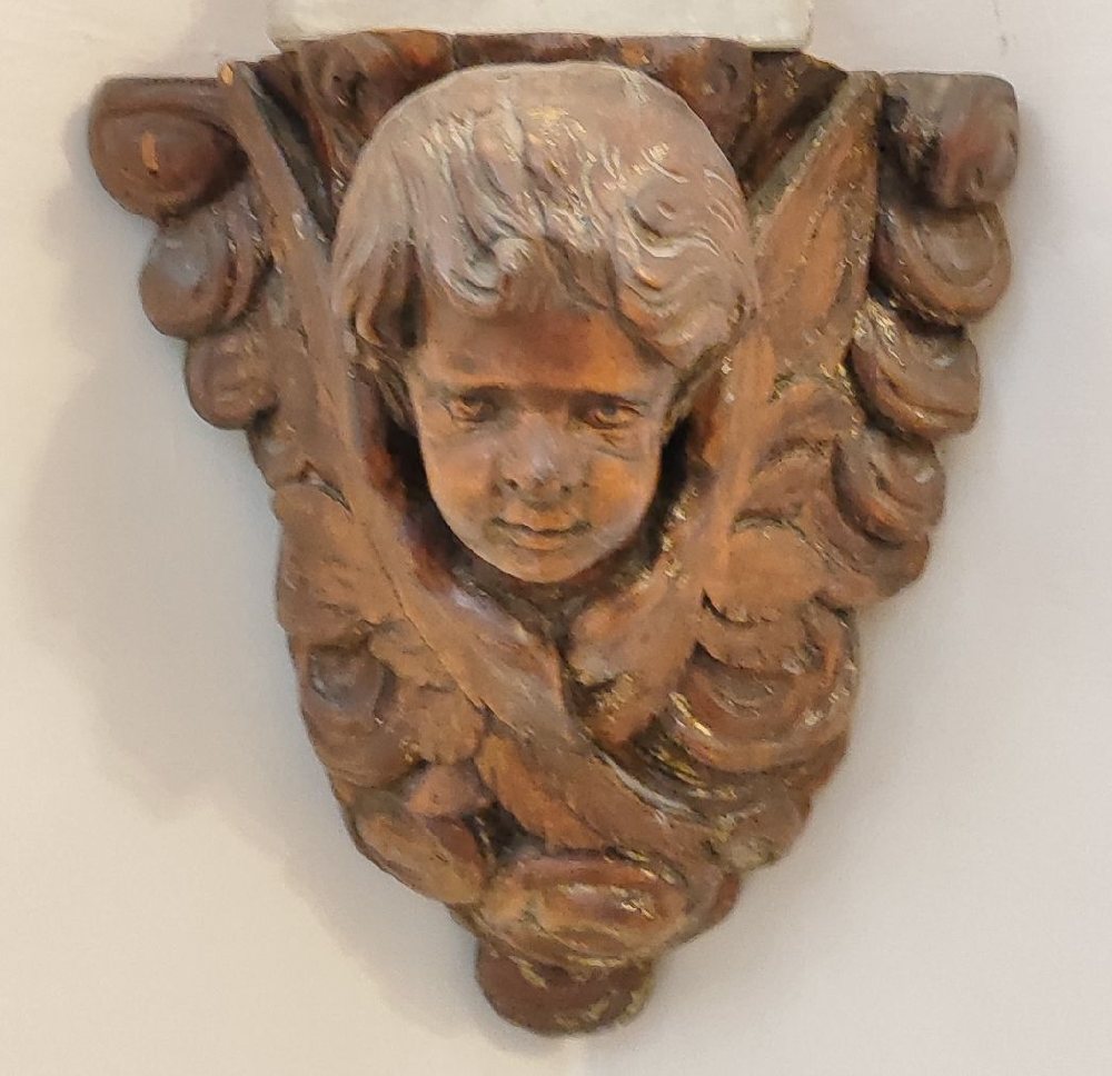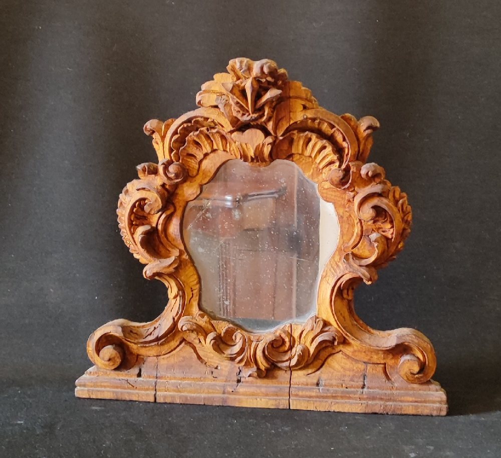 18th C. Italian carved wood altar prayer frame with a mirror, 40 x 36cm
