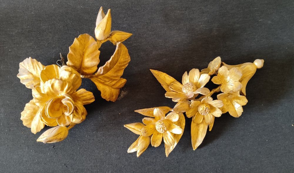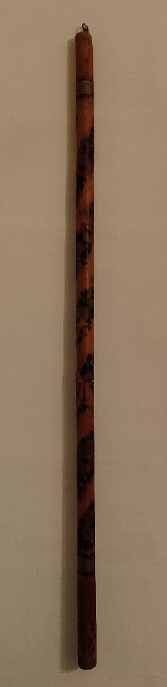 Old ceremonial candle, 147cm with floral decoration (d. ); and a 19th C. carved wood altar stick