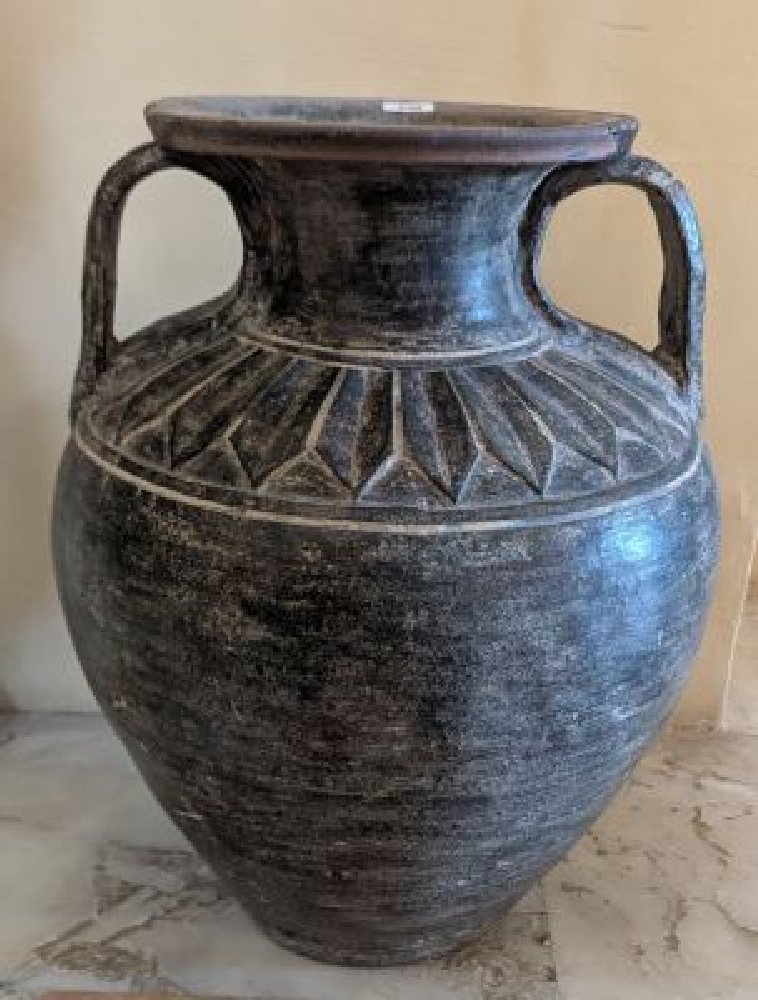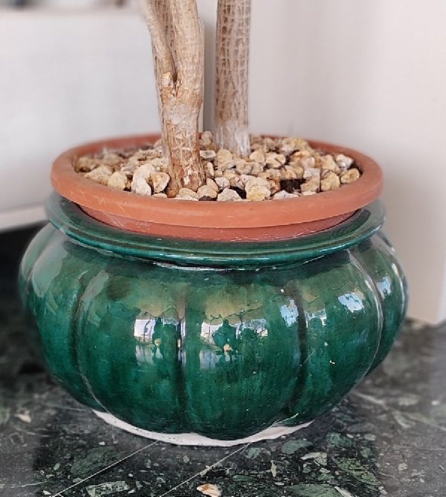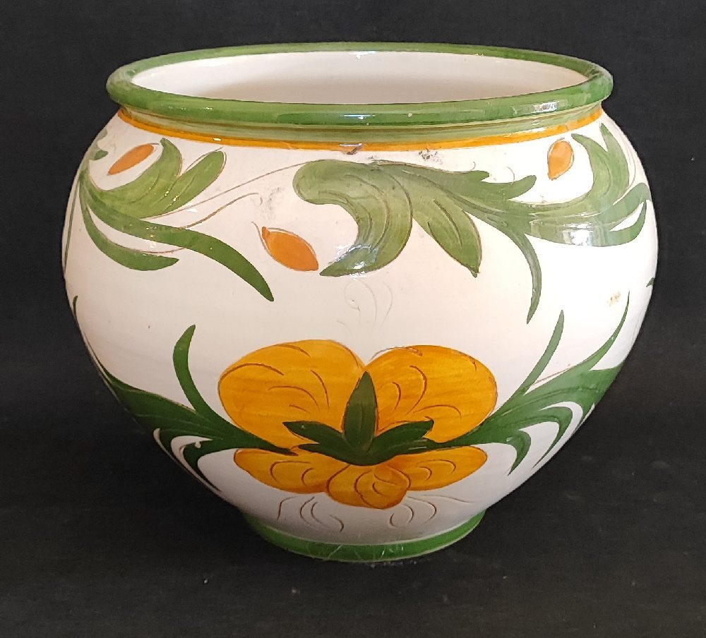 Italian majolica planter with painted green foliage, 37cm