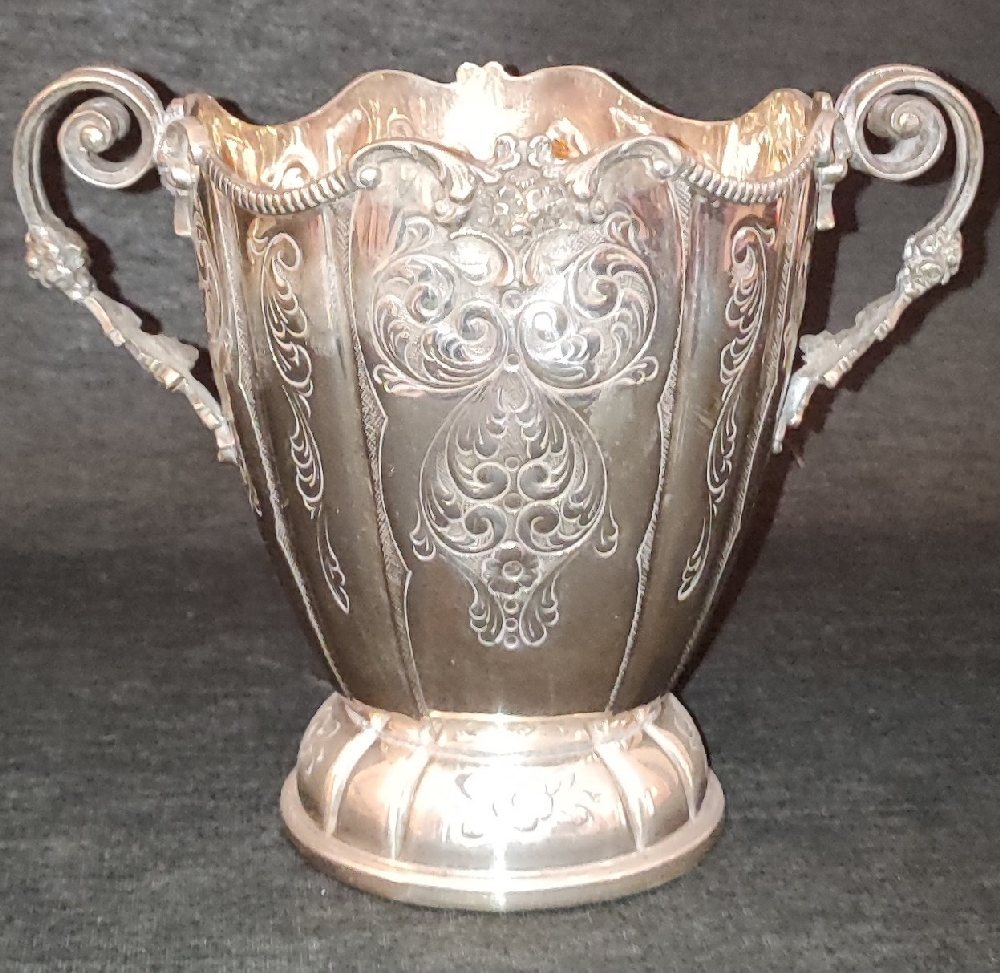 Sterling silver champagne bucket with engraved decoration, 26cm