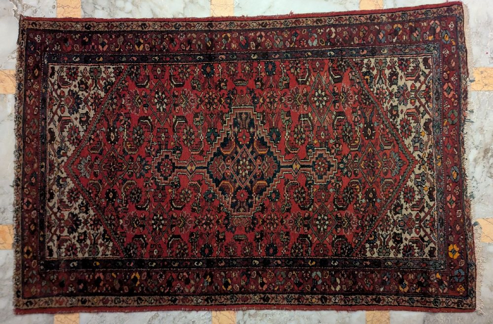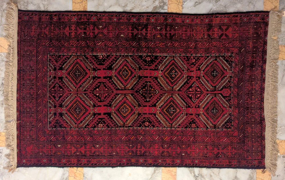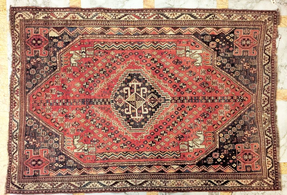 Persian hand woven rug, geometric centre pattern, 180 x 110cm