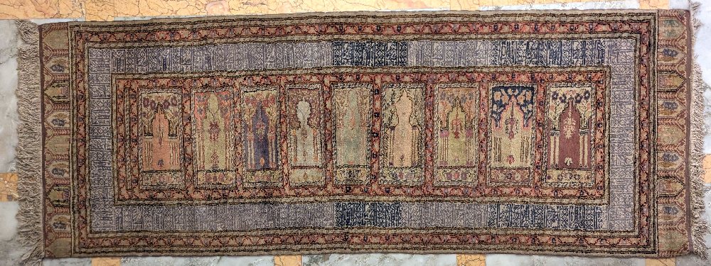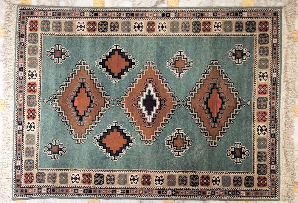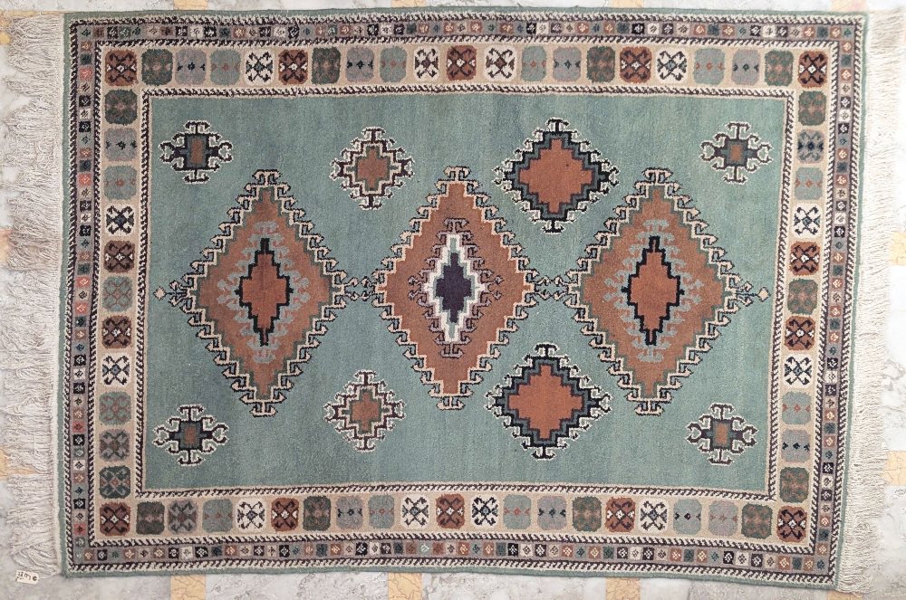 Albanian hand woven carpet, green ground, 240 x 172cm