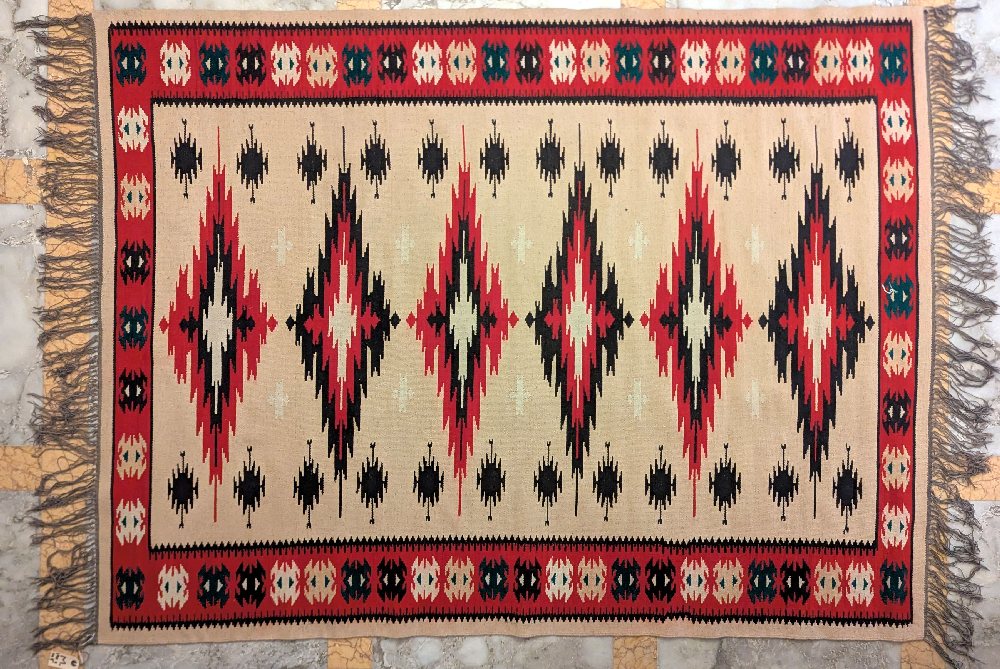 Albanian hand woven rug, geometric patter, 190 x 145cm