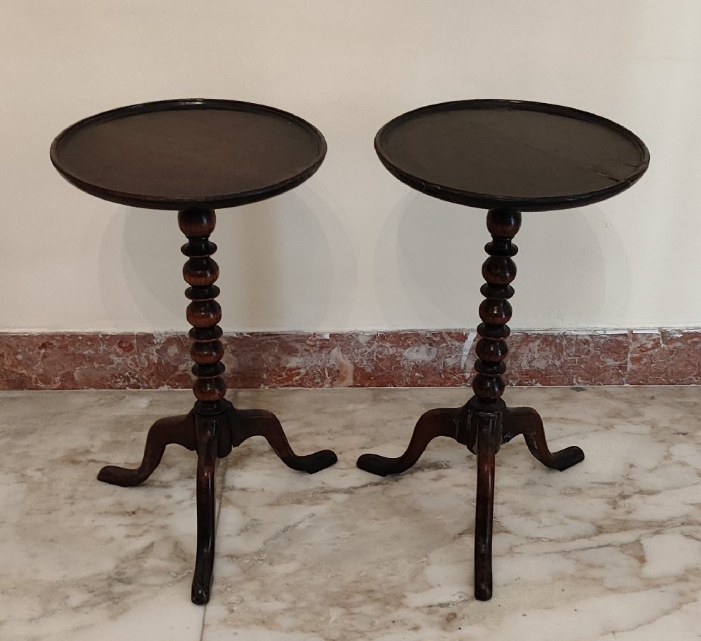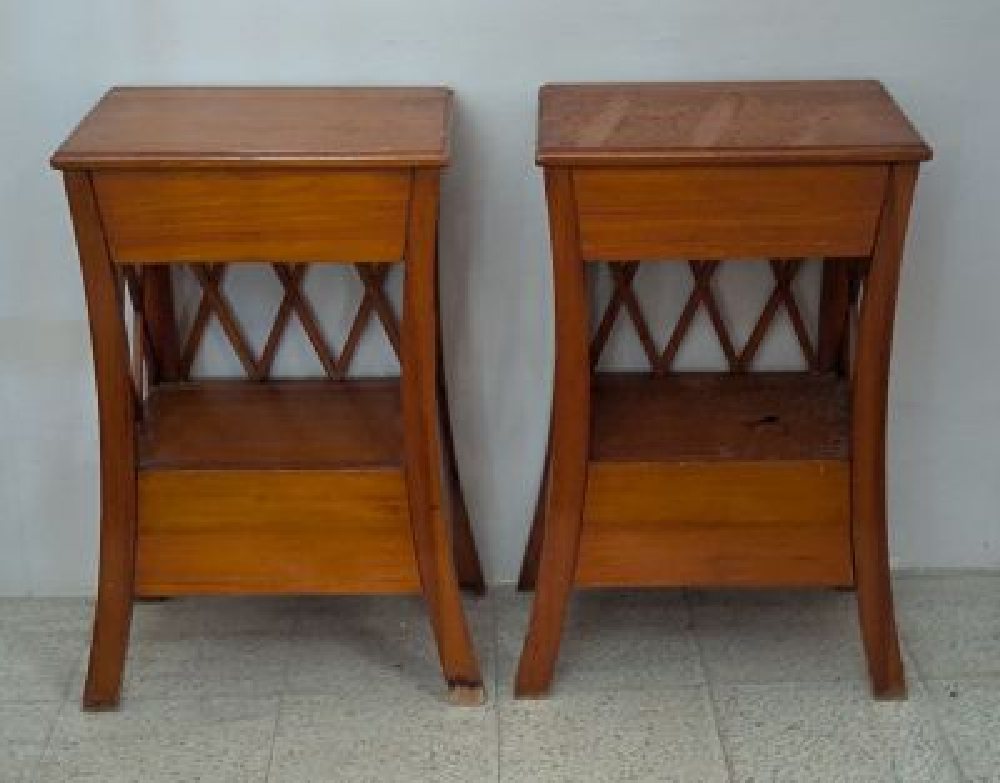 Mahogany pair lamp / side tables with concealed drawers, 40cm