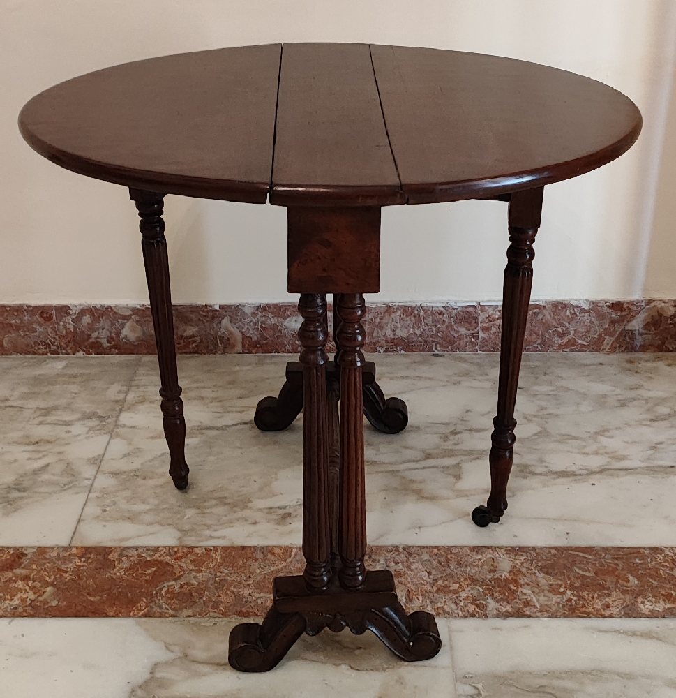 Early 20th C. mahogany oval drop leaf dining table on turned legs, with drawer, 105 x 155cm