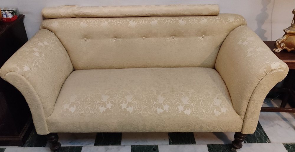 Upholstered 2-seater settee, on turned legs with castors, 160cm