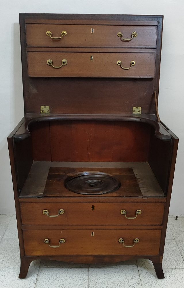 Early 20th C. Mahogany bed side commode with brass handles and splay legs
