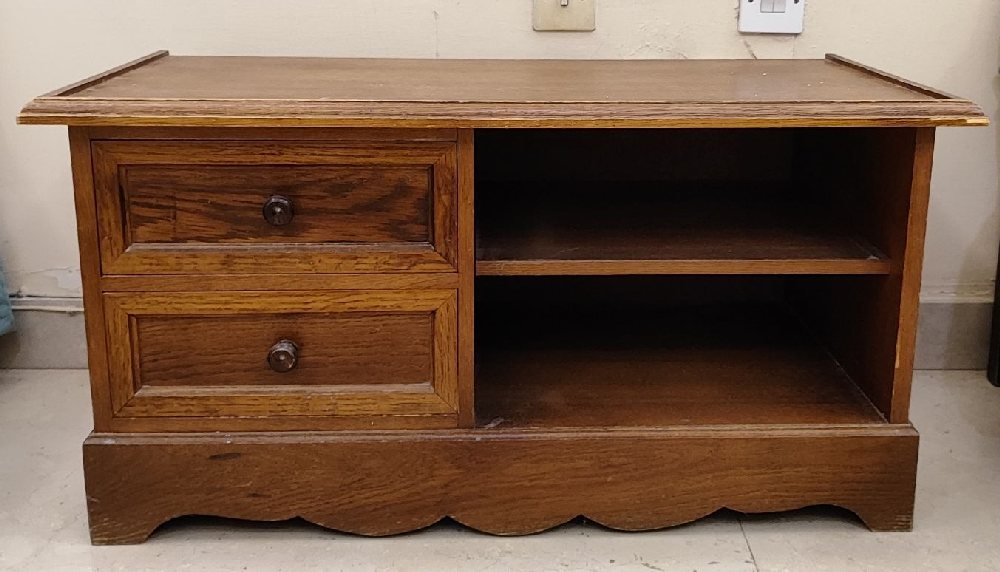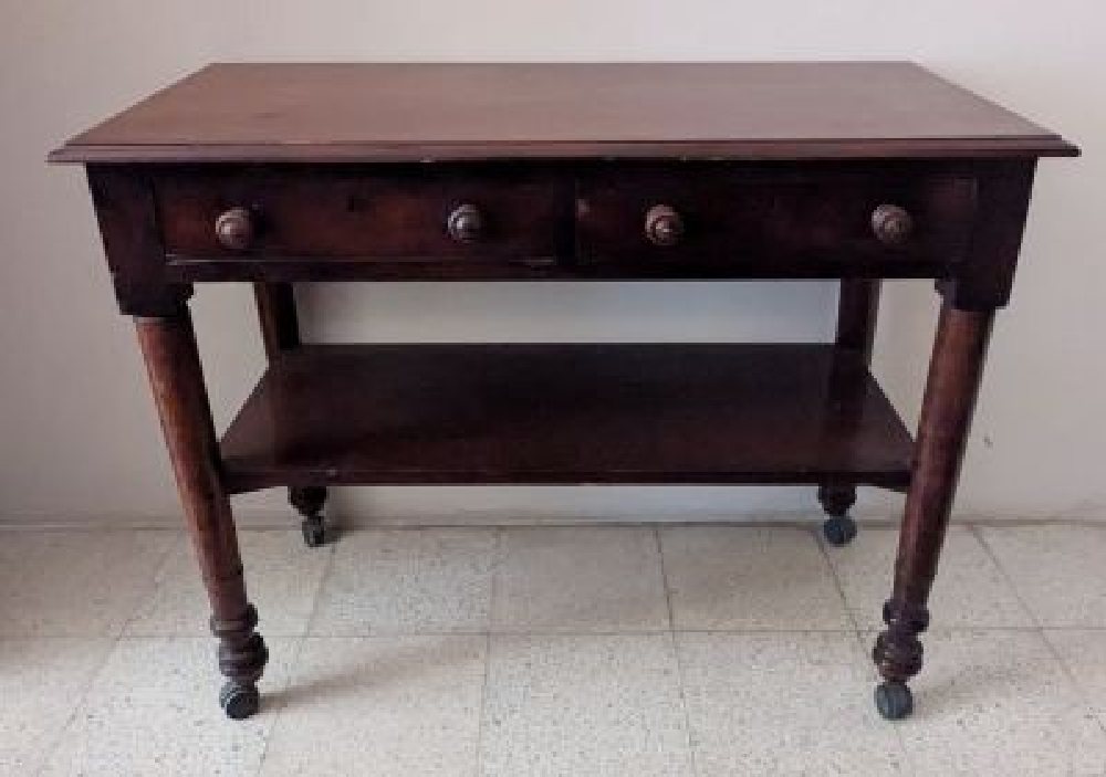 Mahogany side trolley table with 2 drawers, on turned legs, 91cm