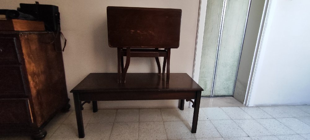 Beechwood pembroke table, 83cm; and Mahogany veneered coffee table, 106cm