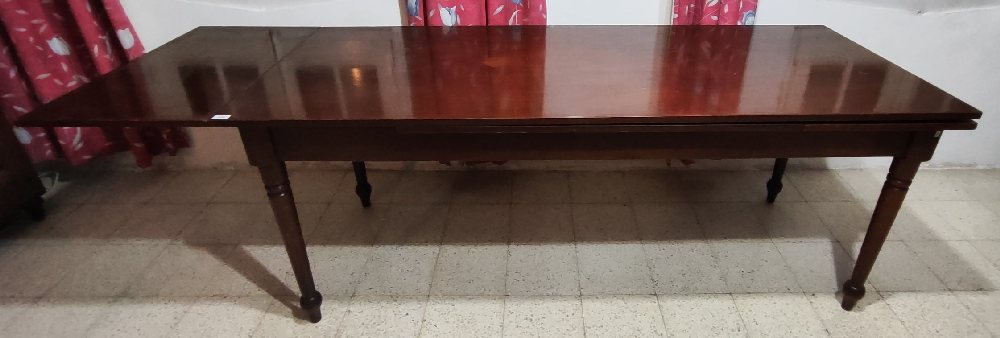 Mahogany dining table with extending surface, on turned legs, 268 (183cm) x 73cm