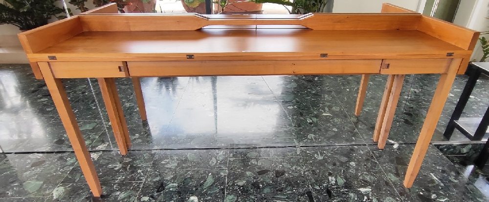 Light mahogany long side table with drawer and fold down top and gate legs, 191 x 42.5cm (85cm)
