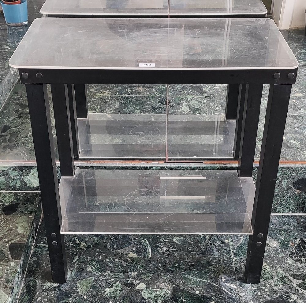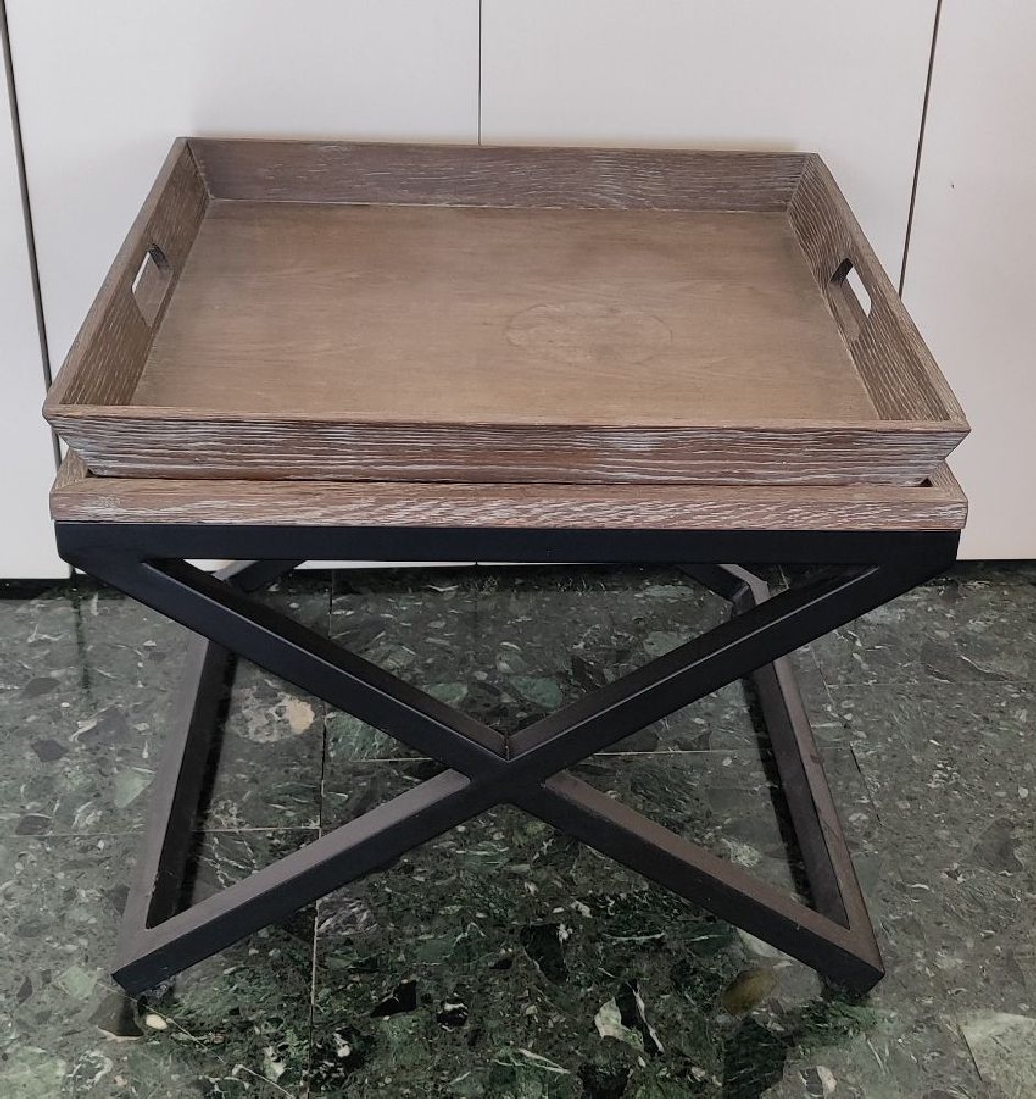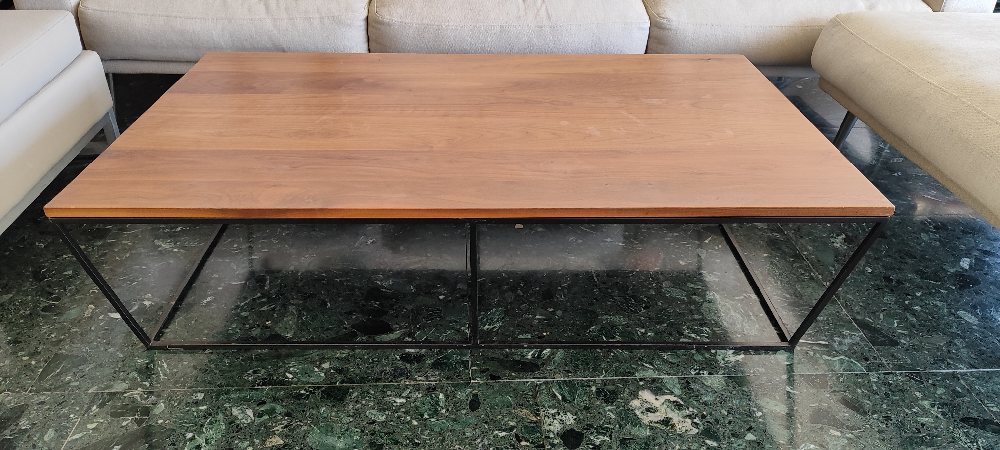 Black aluminium square coffee table with teak stained square top, 60 x 60cm