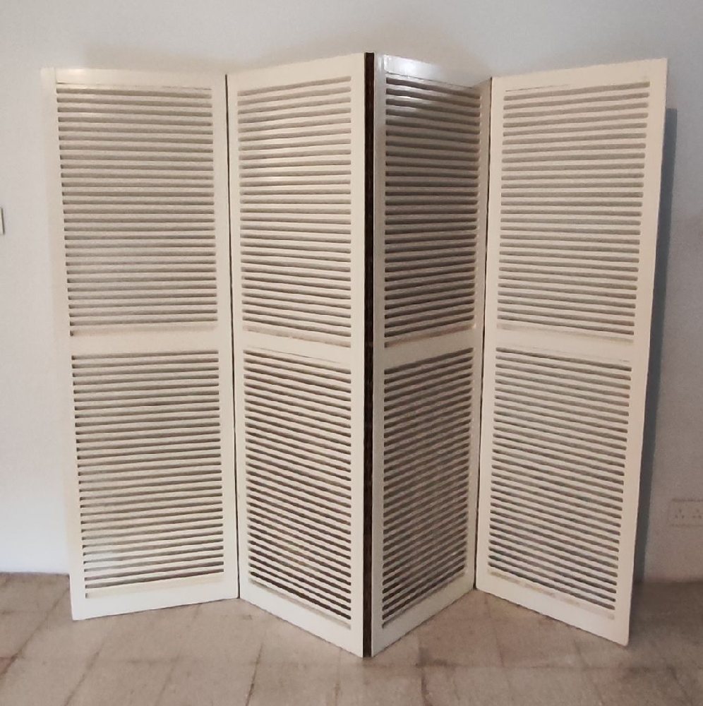White painted wood trolley with undershelf; painted coffee table and rocking chair