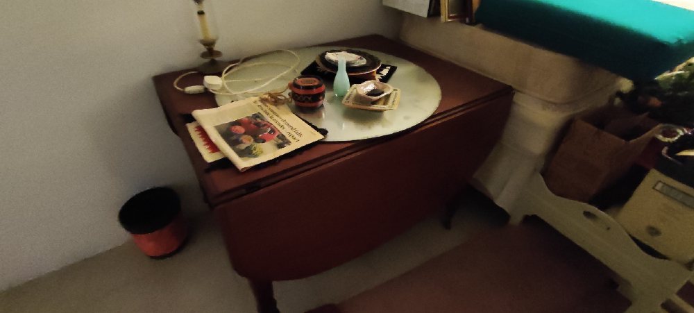 Early 20th C. Windsor chair; Mahogany bed table; folding fishing stool