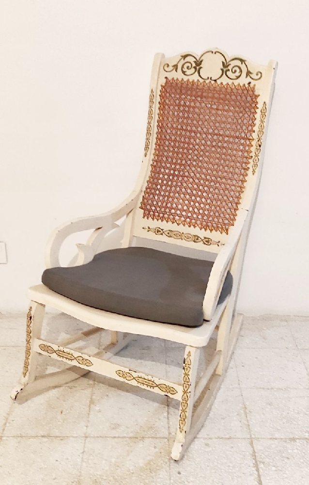 Late 19th C. white painted rocking chair with cane seat and back
